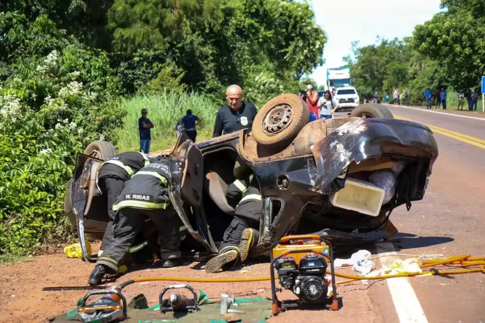 Enquanto voltava de Bonito, motorista perdeu o controle e o veículo acabou capotando na manhã desta segunda-feira (27), na BR-262, entre Terenos e Anastácio. O condutor morreu no local e outras quatro pessoas ficaram feridas.