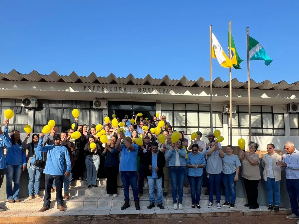 Na manhã desta terça-feira (02), durante o ato cívico da Semana da Pátria, os funcionários da Prefeitura Municipal se reuniram em frente ao Paço Municipal para o hasteamento das bandeiras e o canto do Hino Nacional Brasileiro. Além de celebrar o amor à pátria, o momento foi marcado por uma importante reflexão: a adesão ao movimento Setembro Amarelo, campanha nacional de prevenção ao suicídio.